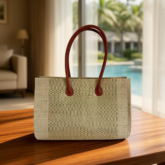 Gloria is made using a woven straw for strength and a woven raffia outer which has a gold “shine” throughout.