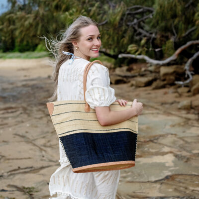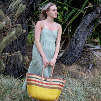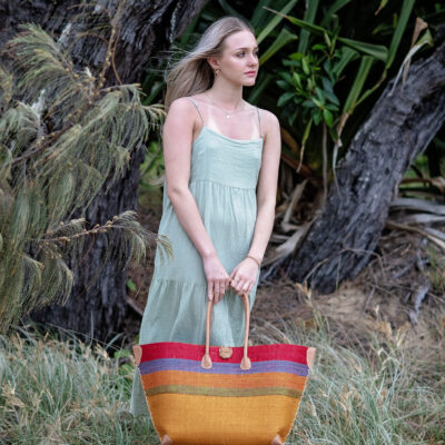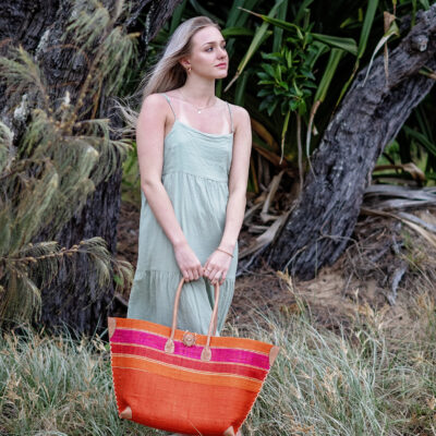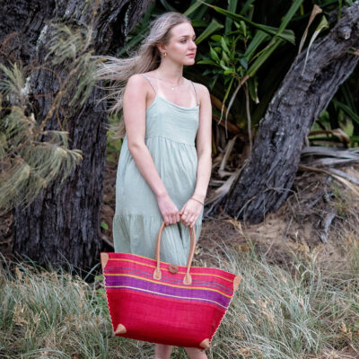 Handmade in Madagascar using raffia.