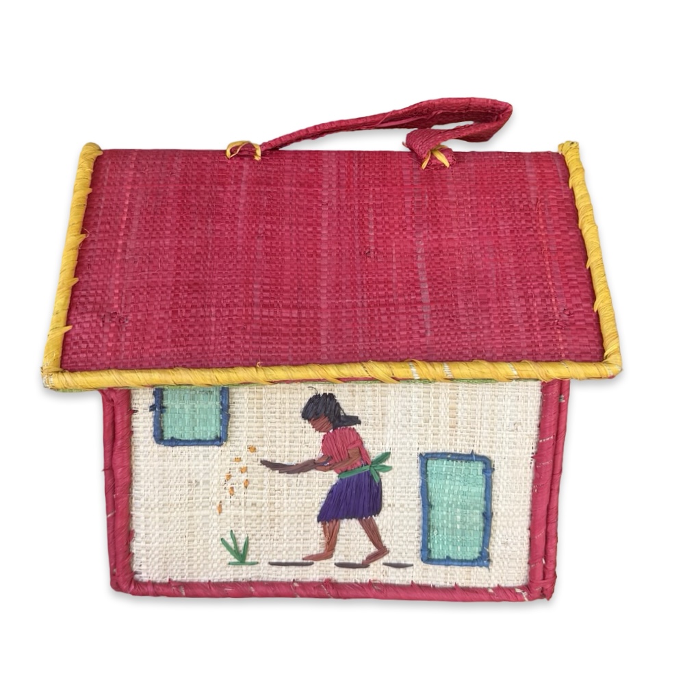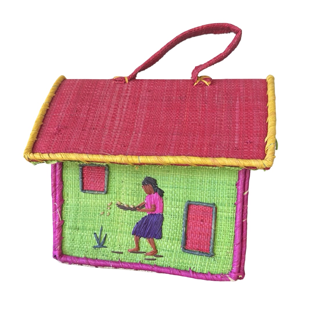 Featuring a strong handle made from raffia, this small house can be carried everywhere!